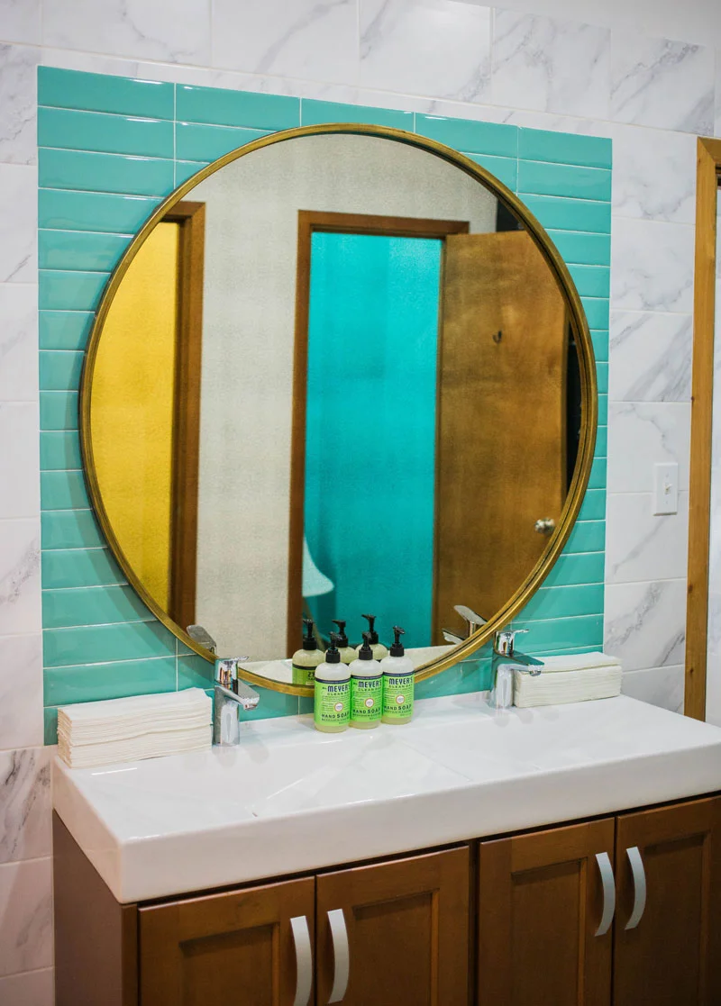 In addition to the space for yoga guests, Kelly knew that Rachel's 15 international employees would need several environments in which to work, optimized for focus, creativity and wellness. She created a "focused office" room intended for heads down, uninterrupted work, as well as an "open office" room complete with a loungey couch, small kitchen, bar height table, and large round rug for floor sitting and stretching.